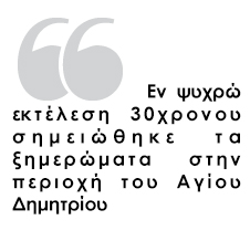 To σενάριο του ξεκαθαρίσματος λογαριασμών μελετούν -μεταξύ άλλων- οι άνδρες της Ασφάλειας Αθηνών (Τμήμα Εγκλημάτων κατά Ζωής) σχετικά με την εν ψυχρώ δολοφονία ενός 30χρονου στον Άγιο Δημήτριο.