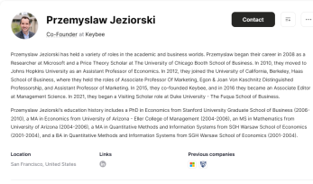 Ο Przemyslaw ξεκίνησε την καριέρα του το 2008 ως Ερευνητής στη Microsoft και ως Υπότροφος Θεωρίας Τιμών στο Booth School of Business του Πανεπιστημίου του Σικάγο.