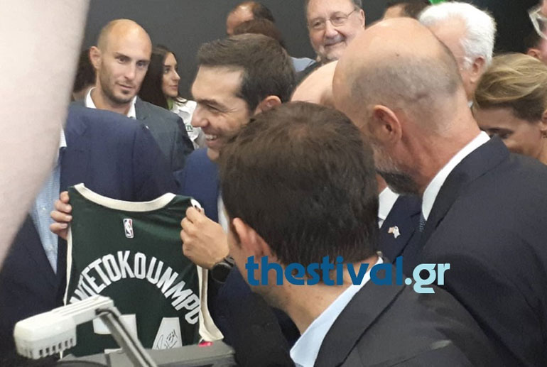 Στη συνέχεια εκπρόσωπος της εταιρείας τους χάρισε από μία υπογεγραμμένη φανέλα των Μιλγουόκι Μπακς με το όνομα του Γιάννη Αντετοκούνμπο.