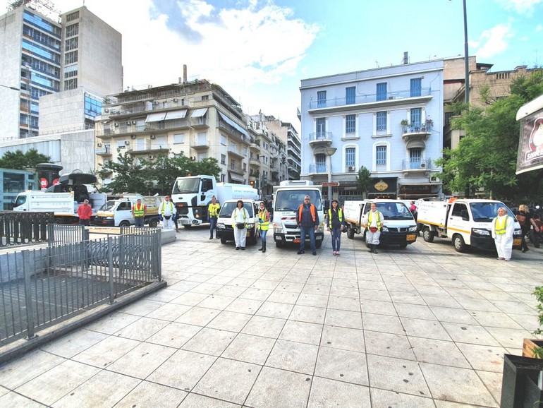Οι συντονισμένες δράσεις καθαριότητας-απολύμανσης και αποκατάστασης σε πολυσύχναστα σημεία όχι μόνο στο κέντρο αλλά και στις συνοικίες της πόλης από τον Δήμο Αθηναίων συνεχίστηκαν σήμερα στην Πλατεία Βικτωρίας, στην 6η Δημοτική Κοινότητα.