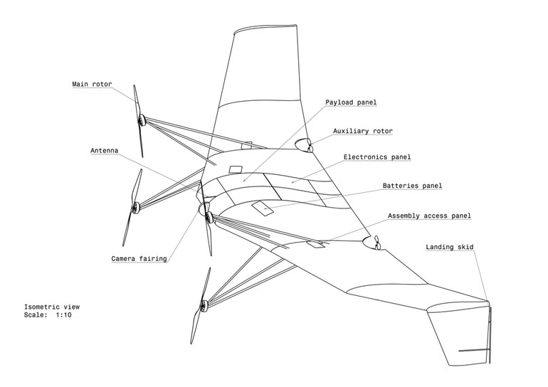Το πολλά υποσχόμενο αυτό μη επανδρωμένο αεροσκάφος, που μπορεί να προσφέρει μια πληθώρα λύσεων σε ειρηνευτικούς σκοπούς όπως είναι η έγκαιρη παροχή φαρμάκων σε απομακρυσμένες τοποθεσίες, βρίσκεται στο στάδιο του αρχικού σχεδιασμού και θα συμμετέχει αρχικά σε μεγάλο διεθνή διαγωνισμό για drones (μάθετε για τον διαγωνισμό εδώ ).
