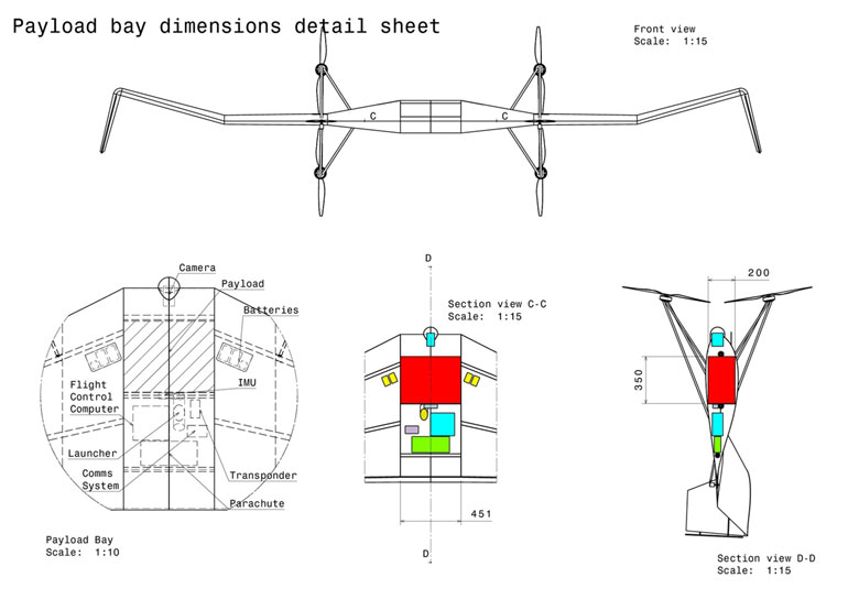 »Το συγκεκριμένο σχέδιο ακολουθεί τους κανονισμούς του διαγωνισμού οι οποίοι απαιτούν απλότητα, ευκολία συναρμολόγησης και καλή πτητική επίδοση, με επιπλέον περιορισμούς στις διαστάσεις του οχήματος και του φορτίου».