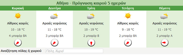 Καιρός: Λίγες νεφώσεις οι οποίες θα είναι πρόσκαιρα κατά τόπους αυξημένες.