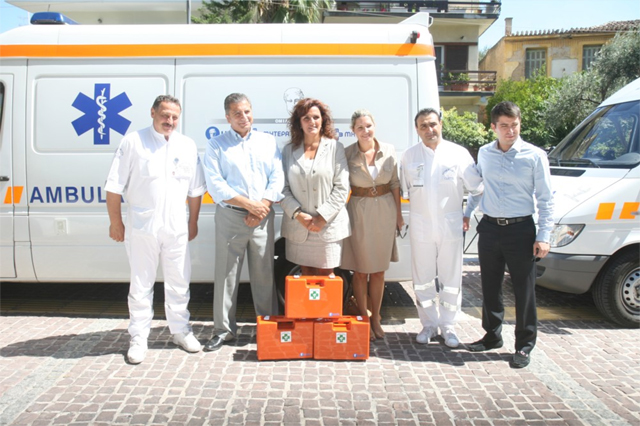Εξήντα δύο κυτία πρώτων βοηθειών με υγειονομικό υλικό και φάρμακα βασικά / μη συνταγογραφούμενα, που θα καλύψουν τις ανάγκες όλων των σχολικών μονάδων της πόλης, παρέλαβε ο δήμαρχος Αμαρουσίου και πρόεδρος του Ιατρικού Συλλόγου Αθηνών, κ. Γιώργος Πατούλης, ως ευγενική προσφορά του Ομίλου ΥΓΕΙΑ.