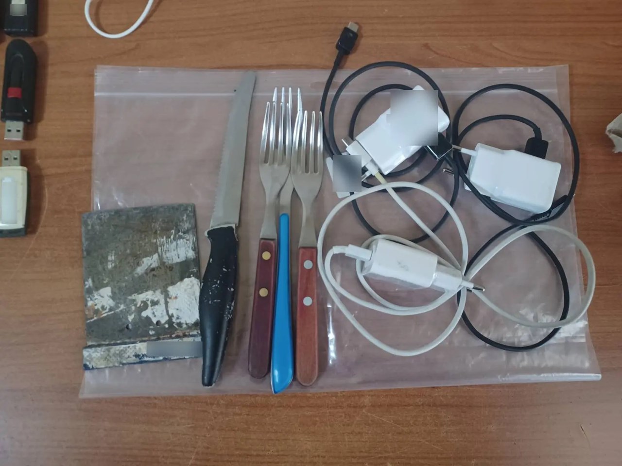 - αυτοσχέδιο ξυράφι και ξυράφι προσαρμοσμένο σε ξύλινο καλαμάκι,