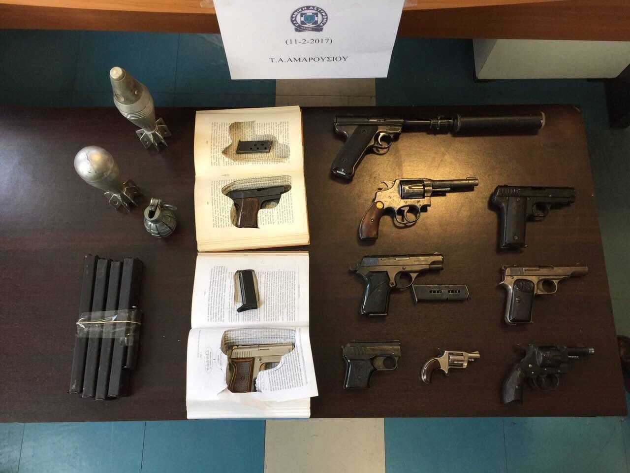 – επτά πιστόλια και πέντε γεμιστήρες