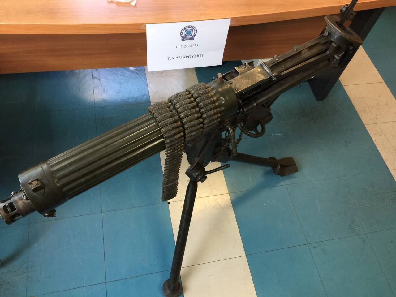– πολυβόλο στηριζόμενο σε τρίποδο, που χρονολογείται προ του Α΄ Παγκοσμίου Πολέμου