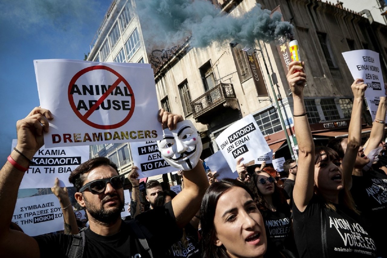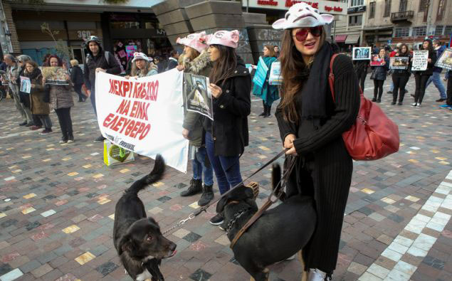 Τα μέλη της vegan ακτιβιστικών ομάδων συγκεντρώθηκαν σήμερα στο Μοναστηράκι και πραγματοποίησαν πορεία προς τη Βαρβάκειο Αγορά.