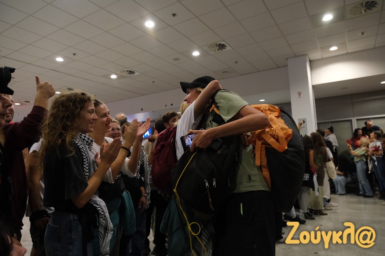 Πλήθος κόσμου έχει συγκεντρωθεί στο Αεροδρόμιο Ελευθέριος Βενιζέλος, για την υποδοχή των ακτιβιστών του Global Sumud Flotilla, που συνελήφθησαν από τις ισραηλινές Αρχές και απελάθηκαν.