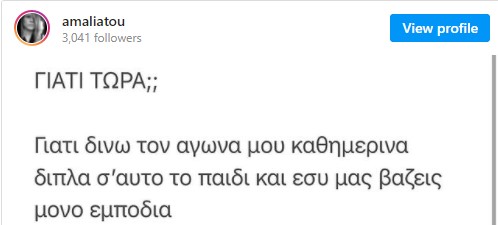 Γιατι δινω τον αγωνα μου καθημερινα διπλα σ’αυτο το παιδι και εσυ μας βαζεις μονο εμποδια