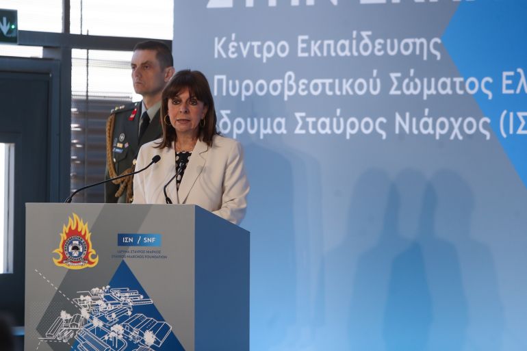 Ειδικά, για το Κέντρο Εκπαίδευσης Πυροσβεστικού Σώματος – Ίδρυμα Σταύρος Νιάρχος, η Πρόεδρος της Δημοκρατίας, Κατερίνα Σακελλαροπούλου τόνισε: