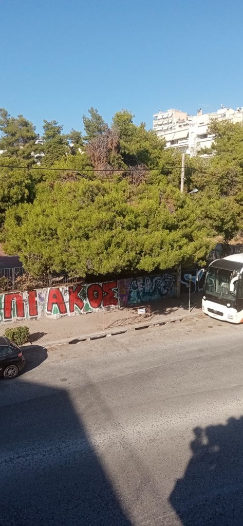 Οι παρακάτω εικόνες με τα ακλάδευτα πεύκα, τα κλαδιά των οποίων φθάνουν μέχρι τον δρόμο, βρίσκονται σε κατοικημένη περιοχή στον περίβολο του Γυμνασίου Δάφνης -Υμηττού επί της λεωφόρου Ηλιουπόλεως απέναντι από την οδό Κύπρου.