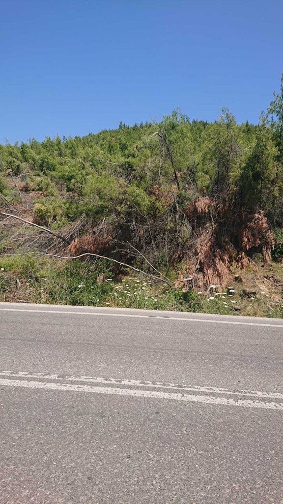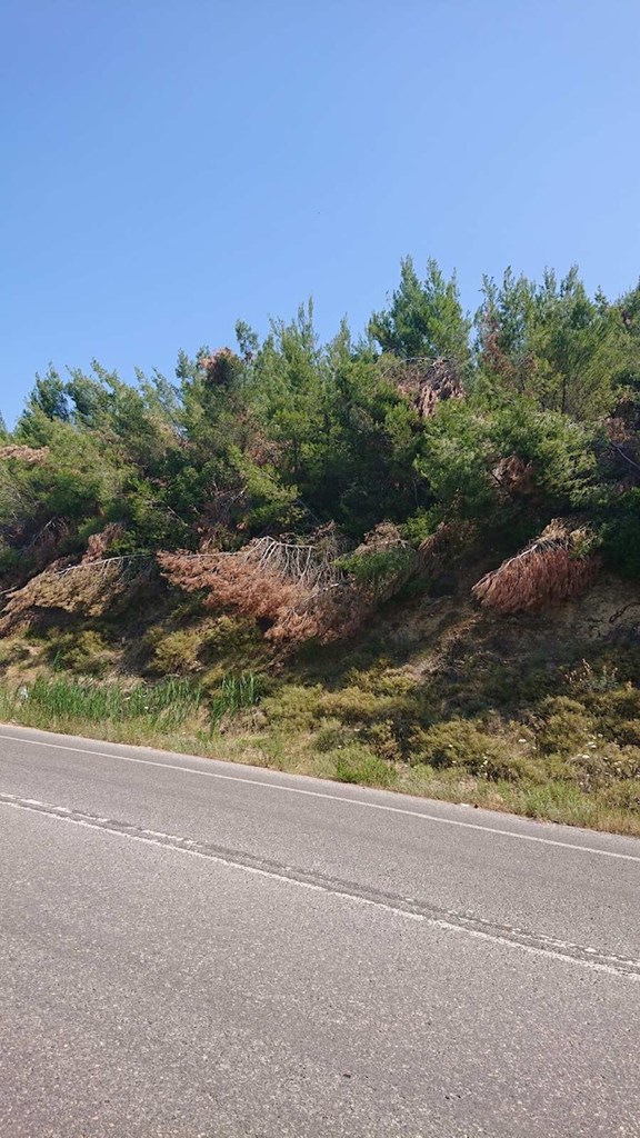 Όπως μας λένε κάτοικοι της περιοχής, πρόκειται για μεγάλους λόγους από θρυμματισμένους κορμούς και κλαδιά, στην περιοχή Αγία Κυριακή του Καλάμου-Καπανδριτίου. Το πευκοδάσος στο συγκεκριμένο σημείο έχει καεί δύο φορές στο παρελθόν.