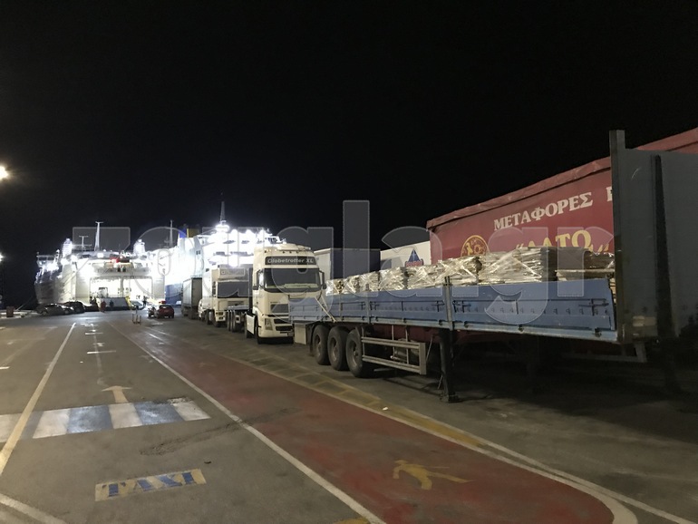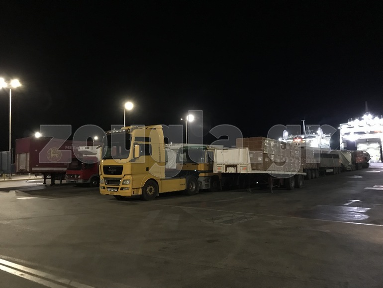 Το βράδυ της Παρασκευής τα φορτηγά που δεν κατάφεραν να επιβιβαστούν σε κάποιο πλοίο της γραμμής ήταν τουλάχιστον πενήντα μεταξύ των οποίων βρίσκονταν και πέντε φορτηγά – ψυγεία.