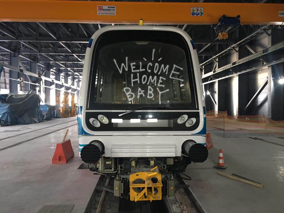 «Δυστυχώς». όπως εξήγησε ο κ. Μυλόπουλος, παρά τον διπλασιασμό των μέτρων ασφαλείας άγνωστοι εισήλθαν τα ξημερώματα της Κυριακής στον χώρο και πρόλαβαν να ζωγραφίσουν γκράφιτι στη μία πλευρά των δύο βαγονιών, από τα τέσσερα, του συρμού, που μόλις την περασμένη Πέμπτη, μπήκε στις ράγες.