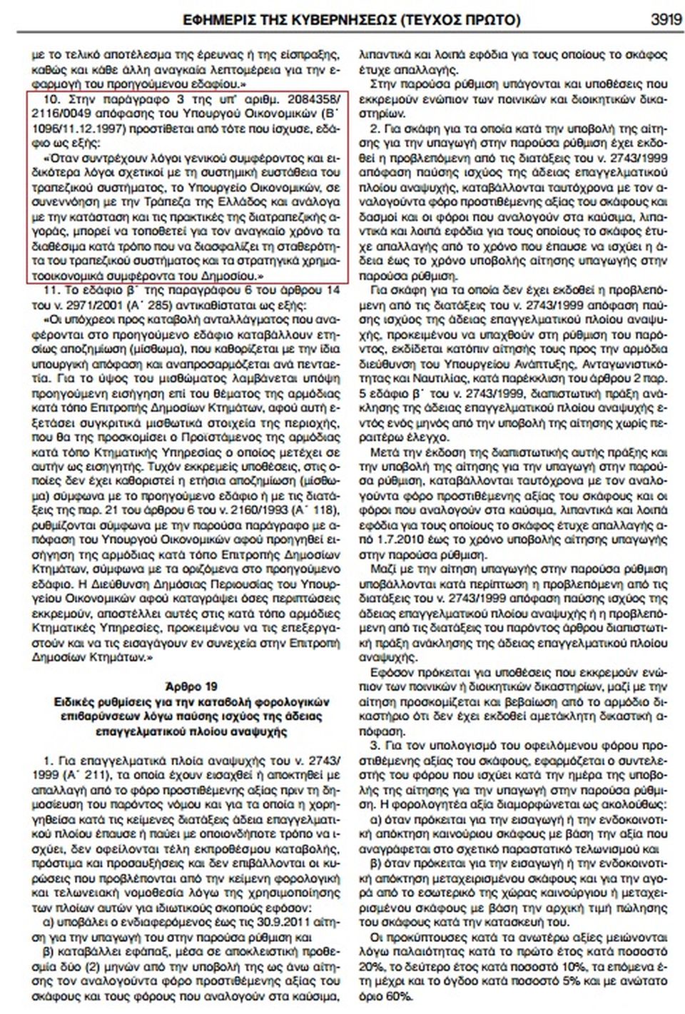 «Όταν συντρέχουν λόγοι γενικού συμφέροντος και ειδικότερα λόγοι σχετικοί με τη συστημική ευστάθεια του τραπεζικού συστήματος, το Υπουργείο Οικονομικών, σε συνεννόηση με την Τράπεζα της Ελλάδος και ανάλογα με την κατάσταση και τις πρακτικές της διατραπεζικής αγοράς, μπορεί να τοποθετεί για τον αναγκαίο χρόνο τα διαθέσιμα κατά τρόπο που να διασφαλίζει τη σταθερότητα του τραπεζικού συστήματος και τα στρατηγικά χρηματοοικονομικά συμφέροντα του Δημοσίου» αναφέρεται χαρακτηριστικά στη διάταξη-σκάνδαλο.