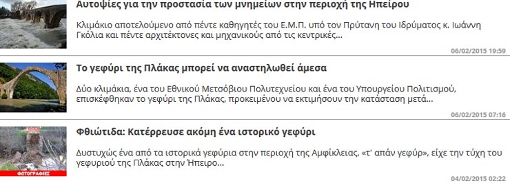 Επίσης, το κλιμάκιο επισκέφτηκε τη γνωστή γέφυρα της Πλάκας, προκειμένου να αξιολογηθούν η κατάσταση του μνημείου και τα αίτια πτώσης της καμάρας, ώστε να δρομολογηθεί ταχύτερα και αποτελεσματικά η αποκατάστασή της, καθώς και τις γέφυρες Κόνιτσας στον Αώο ποταμό, Κλειδωνίας στον Βοϊδομάτη ποταμό, «Ζέρμας» ή «Δροσοπηγής» στο Σαραντάπορο ποταμό και Πολιτσάς στον Άραχθο.