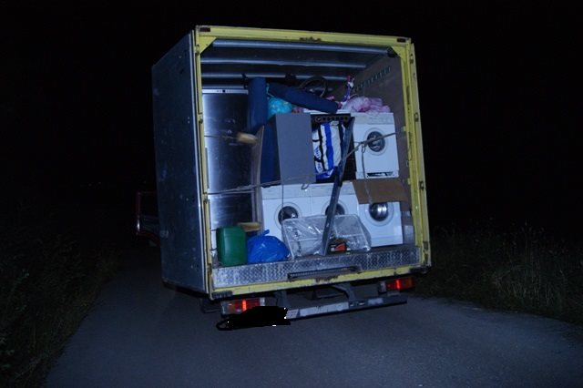 στα φορτηγά αυτοκίνητα δύο μηχανήματα έργων, γεωργικό μηχάνημα, εξωλέμβια μηχανή τρέιλερ, καθώς και πλήθος οικιακών συσκευών, την κατοχή των οποίων δεν μπορούσαν να δικαιολογήσουν και