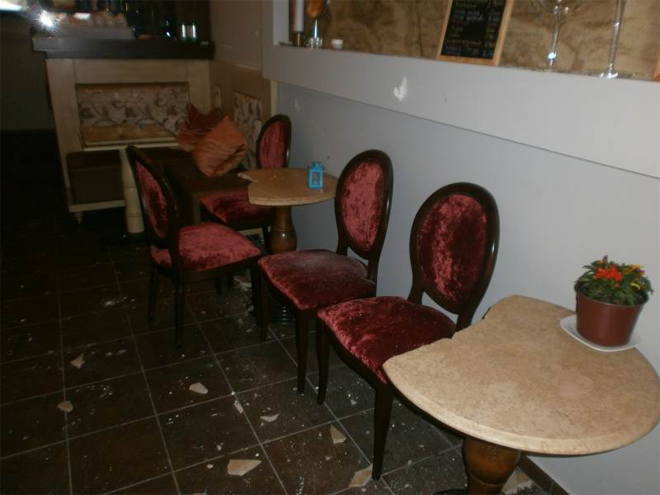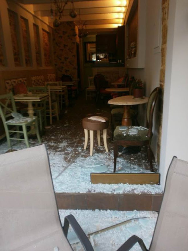 Οι καταστροφές που έχει υποστεί το κατάστημα ανέρχονται σε δεκάδες χιλιάδες ευρώ.