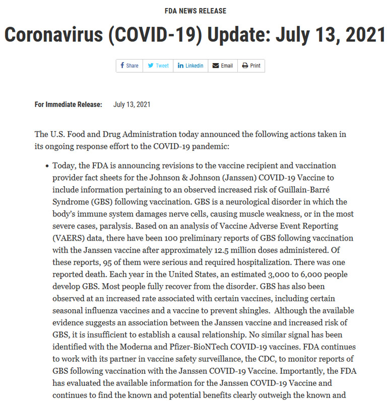 Ο FDA είχε προειδοποιήσει από τον Ιούλιο για τις παρενέργειες του εμβολίου.