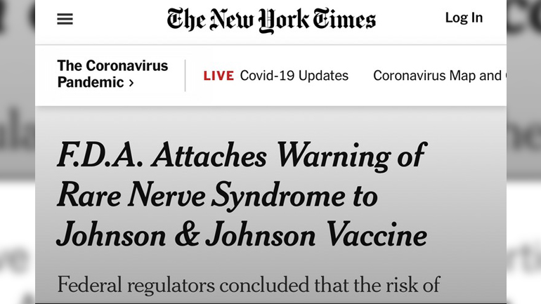 Οι New York Times ανέφεραν τις προειδοποιήσεις του FDA για τις παρενέργειες του εμβολίου της Johnson & Johnson.