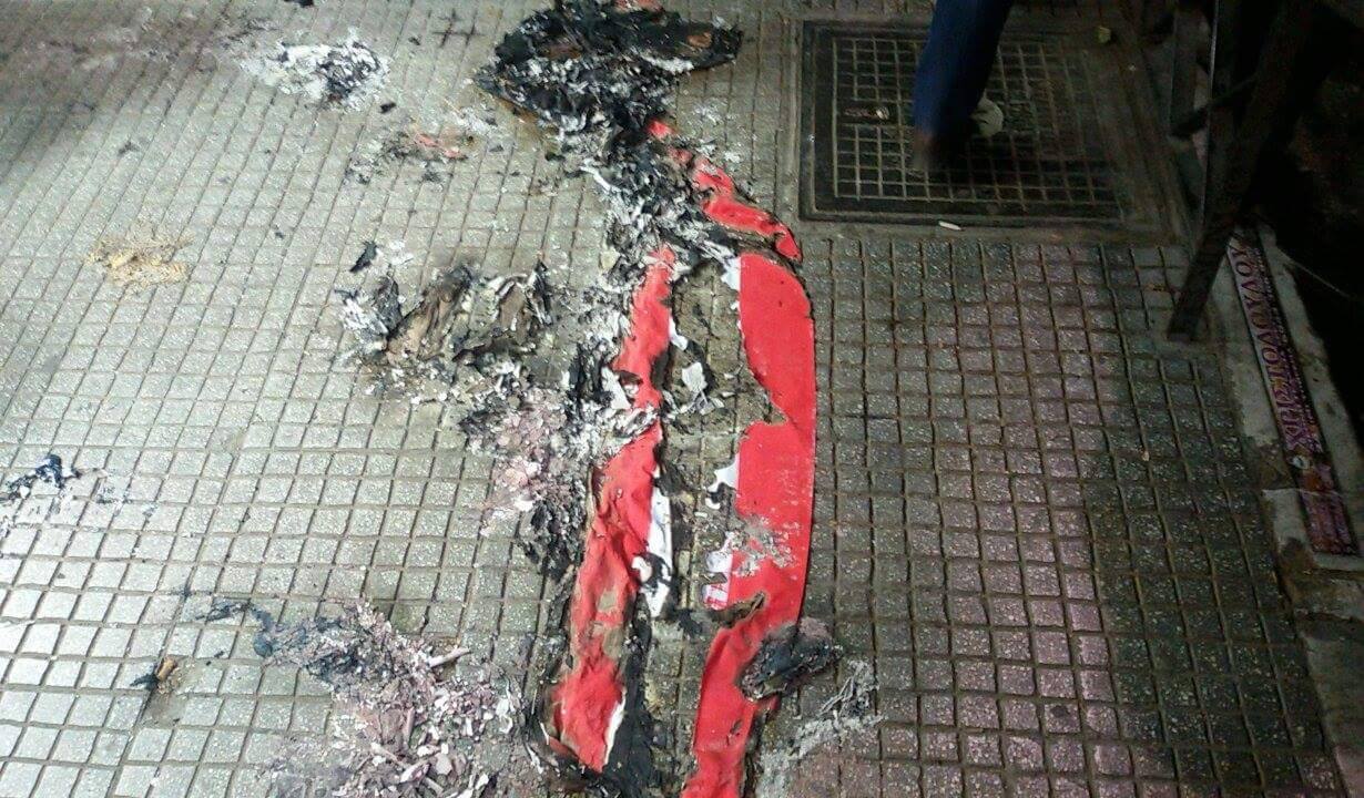 Φωνάζοντας συνθήματα κατά της Ευρωπαϊκής Ένωσης και του ΝΑΤΟ, μέλη του ΠΑΜΕ και της ΚΝΕ, που πραγματοποιούν πορεία διαμαρτυρίας στο κέντρο της πόλης έκαψαν μια σημαία του Οργανισμού Βορειοατλαντικού Συμφώνου έξω από το αμερικανικό προξενείο της Θεσσαλονίκης.