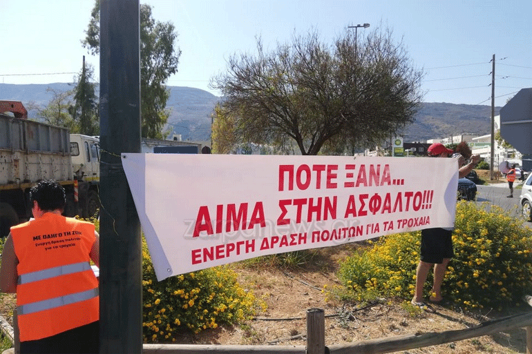 Στο σημείο της δράσης οι οργανωτές τοποθέτησαν πανό με σύνθημα ευαισθητοποίησης για τα δυστυχήματα στους δρόμους, ενώ η κίνηση των οχημάτων ρυθμιζόταν από προσωπικό της τροχαίας.