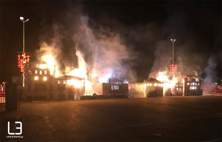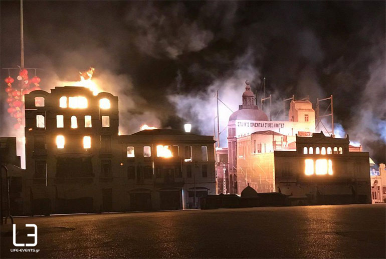 Με ένα εντυπωσιακό θέαμα ολοκληρώθηκε η σειρά εκδηλώσεων «Εγινε η Σπίθα Πυρκαγιά» που παρουσίασε μέσα από διάφορες δράσεις τη μεγάλη φωτιά της Θεσσαλονίκης το 1917, η οποία και κατέστρεψε μεγάλο μέρος της πόλης.