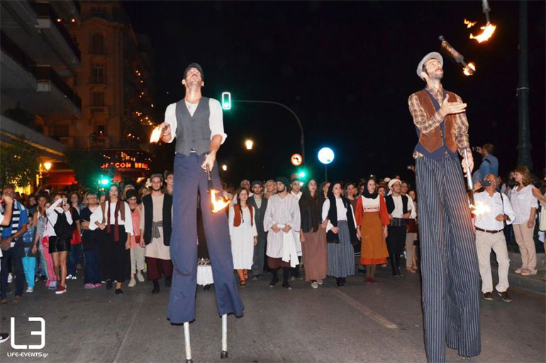 Μετά την αναπαράσταση στην Πλατεία Μουσχούντη, απ’όπου ξεκίνησε η πυρκαγιά, η εκδήλωση κατέληξε και ολοκληρώθηκε στην Λεωφόρο Νίκης με πλήθος κόσμου να παρακολουθεί το θέαμα, που σκοπό είχε να μάθουμε για την στιγμή εκείνη που άλλαξε σημαντικά την εικόνα της Θεσσαλονίκης και παράλληλα αποτέλεσε αφορμή για την εκ νέου ανοικοδόμηση της.