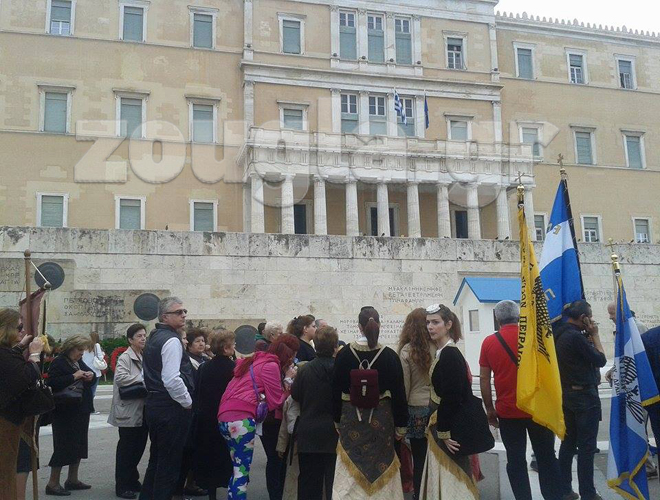 Μέλη ποντιακών συλλόγων, με τις παραδοσιακές φορεσιές τους, προέβησαν σε ομιλίες, ενημερώσεις στους περαστικούς και τήρησαν ενός λεπτού σιγή.