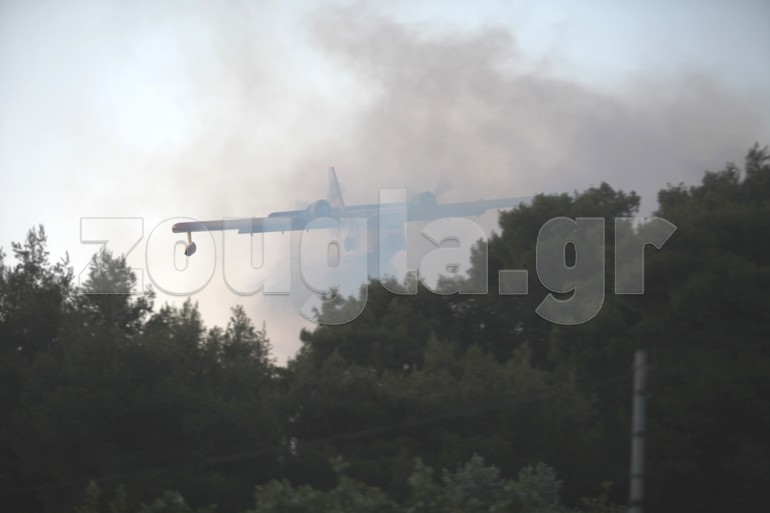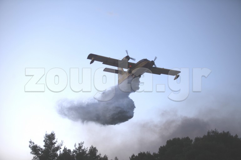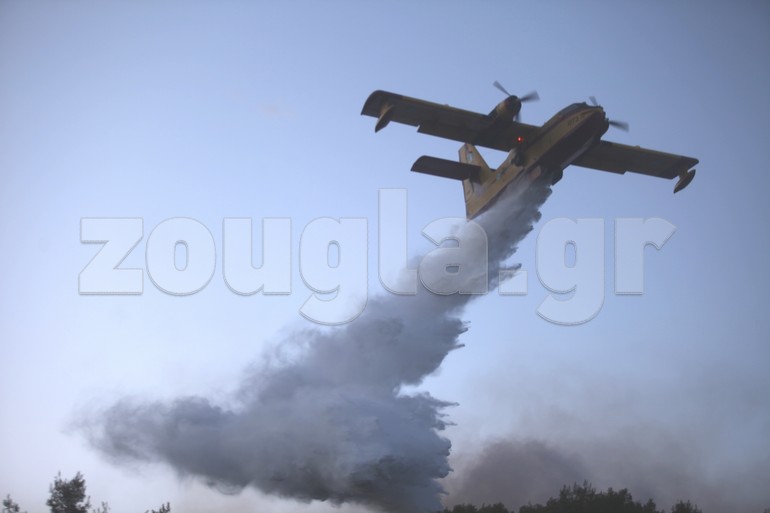 Με το πρώτο φως της ημέρας ξεκίνησαν τις ρίψεις νερού τα πυροσβεστικά αεροπλάνα