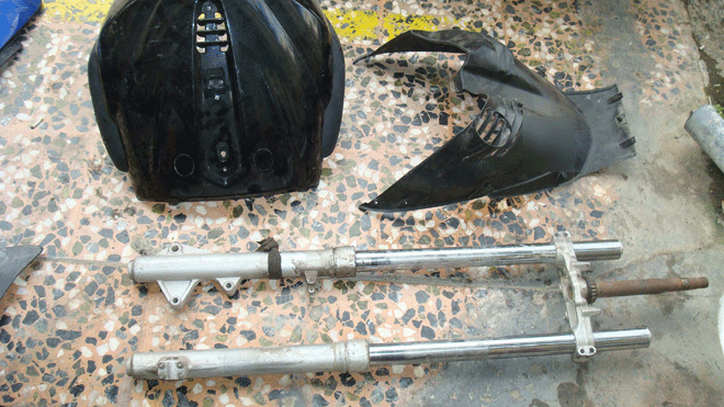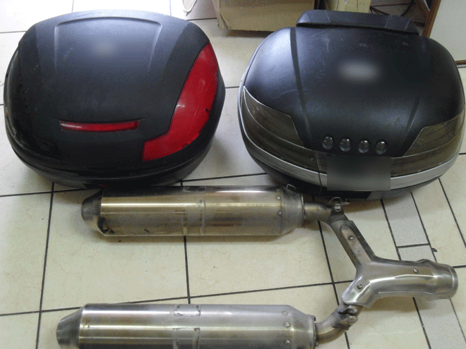 – πλήθος εξαρτημάτων δικύκλων (εξατμίσεις, σέλες, κράνη, ψυγεία, αναρτήσεις, ανεμοθώρακες κ.ά.)