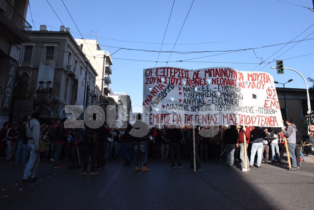 Λίγο πριν τις δύο το μεσημέρι έκλεισαν οι πύλες του Πολυτεχνείου και ο κόσμος άρχισε να δημιουργεί τα μπλοκ της πορείας, που θα ξεκινήσει από την οδό Πατησίων...