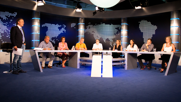 Πολιτικοί, δημοσιογράφοι και σχολιαστές συμμετέχουν στις συζητήσεις.