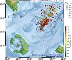 «Από την έναρξη της σεισμικής δραστηριότητας στη ζώνη Σαντορίνης-Αμοργού στις 26 Ιανουαρίου έως και τις 9 Φεβρουαρίου 2025, το Εργαστήριο Σεισμολογίας (ΕΣ) του ΕΚΠΑ (http://dggsl.geol.uoa.gr/) έχει ανιχνεύσει και εντοπίσει συνολικά, με αυστηρά κριτήρια για τη διασφάλιση της ποιότητας των αποτελεσμάτων, πάνω από 14,000 σεισμούς με μεθόδους μηχανικής μάθησης (τεχνητής νοημοσύνης), εκ των οποίων περίπου 12,000 με μεγέθη Μ³1.0.