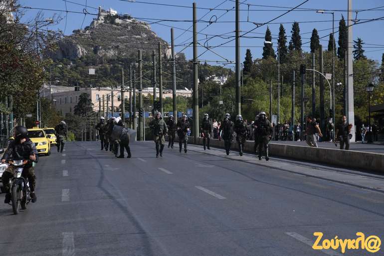 Κλειστές για την ώρα είναι η λεωφόρος Αμαλίας, η Σταδίου, η Πανεπιστημίου και η Διονυσίου Αρεοπαγίτου.