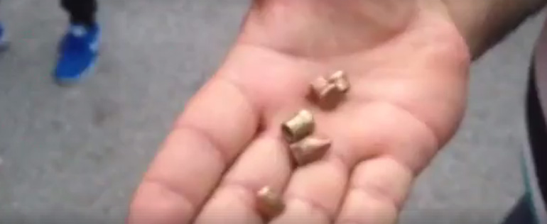 Αγανακτισμένοι κάτοικοι δείχνουν κάλυκες τους οποίους έχουν βρει έξω από σχολεία