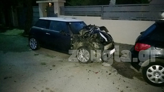 Κομμάτια από τον προφυλακτήρα του αυτοκινήτου σκορπίστηκαν στο οδόστρωμα.