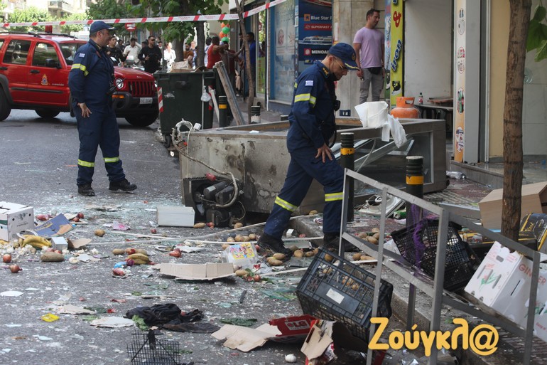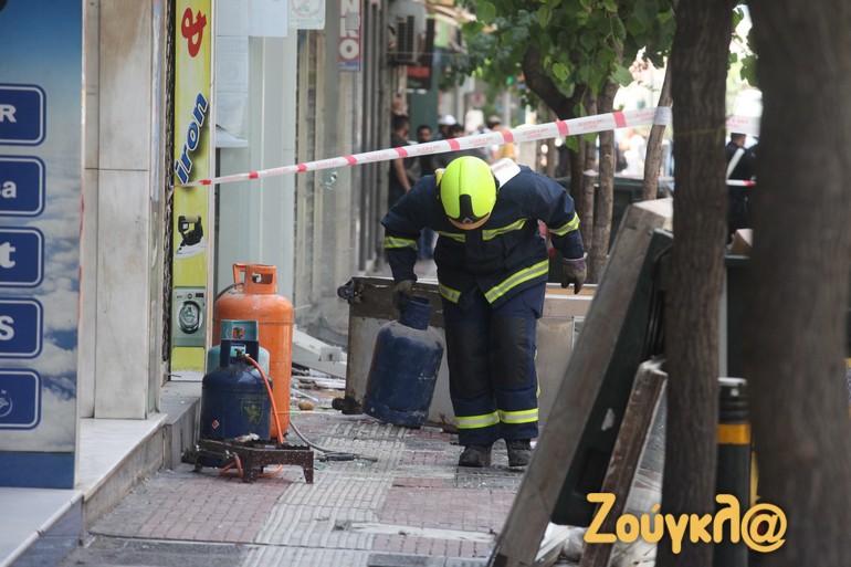 Για την έκρηξη, που προκλήθηκε από φιάλη υγραερίου, ειδοποιήθηκε η Πυροσβεστική στις 12:50 και στο σημείο έσπευσαν δυνάμεις της, οι οποίες έβγαλαν από το εσωτερικό του τραυματισμένο έναν υπάλληλό του.