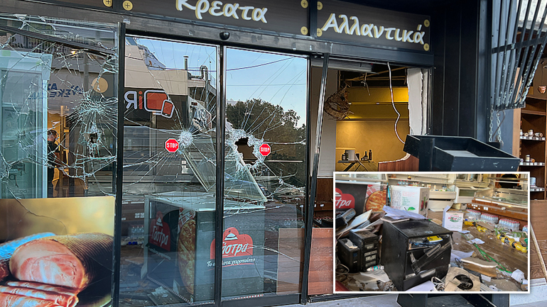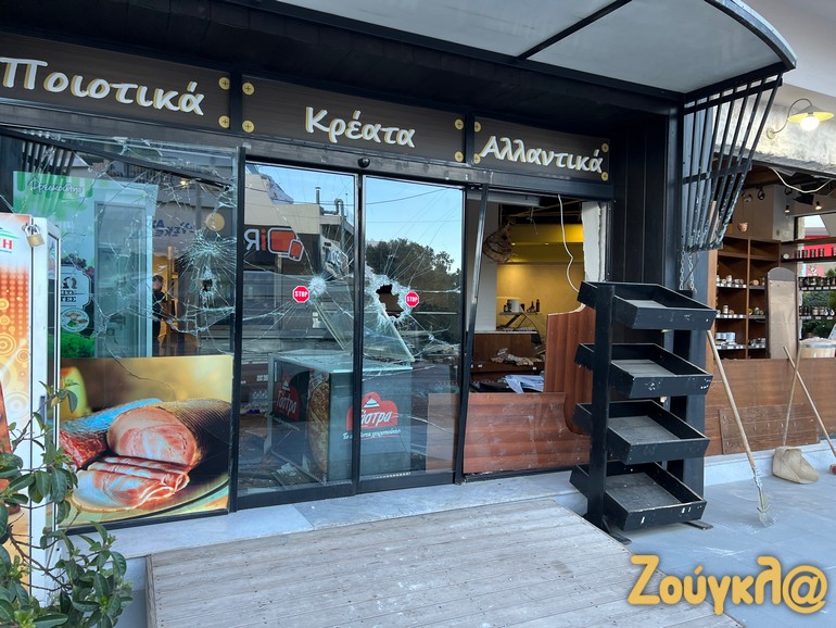 Δύο άγνωστοι προσέγγισαν με μηχανή το κατάστημα, έσπασαν τον υαλοπίνακα και πέταξαν μέσα εκρηκτικό μηχανισμό υψηλής ισχύος.