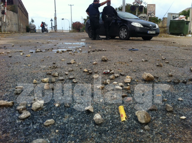Σπασμένα κάγκελα και μάρμαρα. Δρόμοι γεμάτοι πέτρες και άλλα υλικά, τα οποία χρησιμοποιούσαν ως πολεμοφόδια οι πρωταγωνιστές των θλιβερών επεισοδίων, πολιορκώντας για πολλές ώρες την είσοδο του κτηρίου της Πειραϊκής – Πατραϊκής, μέσα στο οποίο βρίσκουν καταφύγιο μετανάστες.