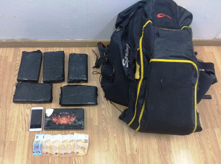 Η 25χρονη μετέφερε στην αποσκευή της, επιμελώς κρυμμένες σε αλεξίπτωτο πλαγιάς, έξι συσκευασίες που περιείχαν κοκαΐνη βάρους 6,7 κιλών.