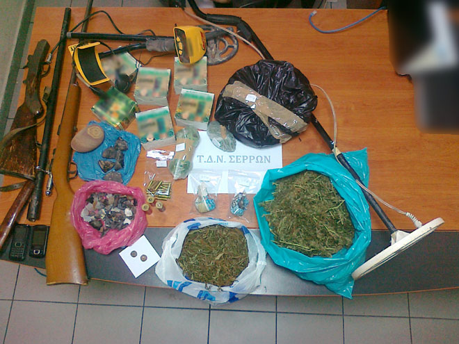 Συνελήφθη το μεσημέρι της Δευτέρας από αστυνομικούς του Τμήματος Δίωξης Ναρκωτικών Σερρών ένας άνδρας, 49 ετών, για κατοχή ναρκωτικών ουσιών, παράβαση της νομοθεσίας «περί προστασίας αρχαιοτήτων και εν γένει της πολιτιστικής κληρονομιάς» και παράνομη οπλοκατοχή.