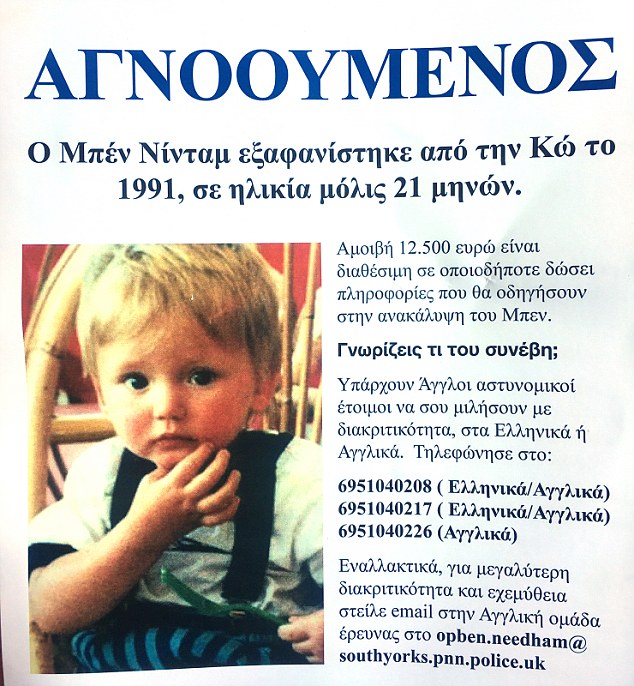Νέα τροπή παίρνει 25 χρόνια μετά η πολύκροτη υπόθεση εξαφάνισης του μικρού Μπεν Νίνταμ, ο οποίος χάθηκε σε ηλικία μόλις 21 μηνών στο νησί της Κω το καλοκαίρι του 1991. Σύμφωνα με ενημέρωση που είχε η οικογένεια Νίνταμ από την αστυνομία του Νότιου Γιόρκσαϊρ, ομάδα αστυνομικών επιστρέφει στην Ελλάδα ώστε να ξαναρχίσουν οι έρευνες.