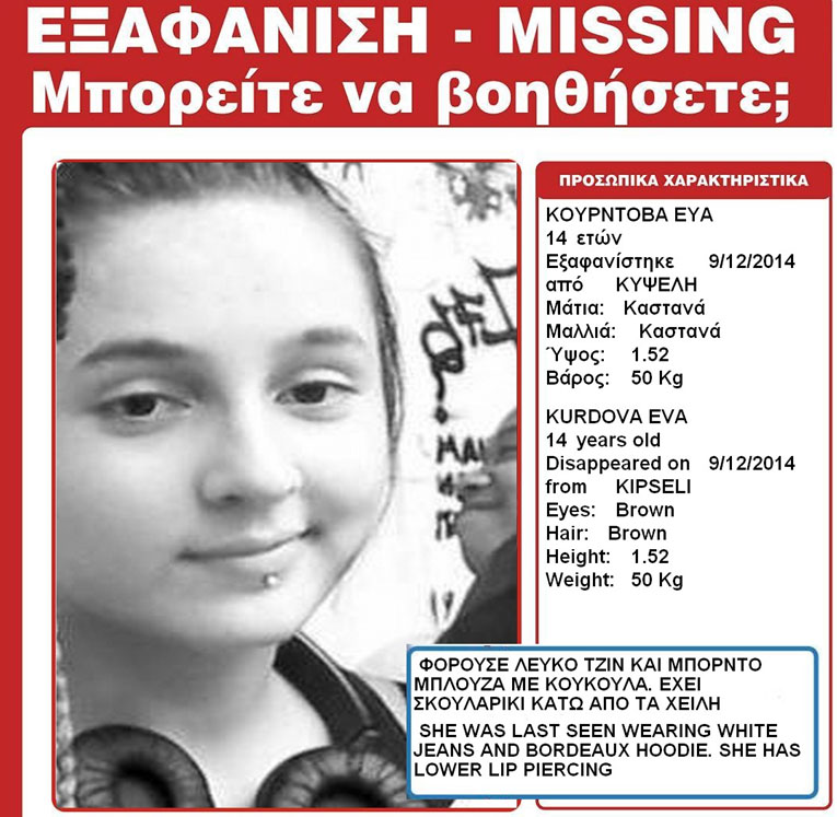 Στις 9 Δεκεμβρίου 2014 στις 19.30, η Εύα Κούρντοβα εξαφανίστηκε από την περιοχή της Κυψέλης. Η ανήλικη έκτοτε δεν έχει επικοινωνήσει με την οικογένειά της.