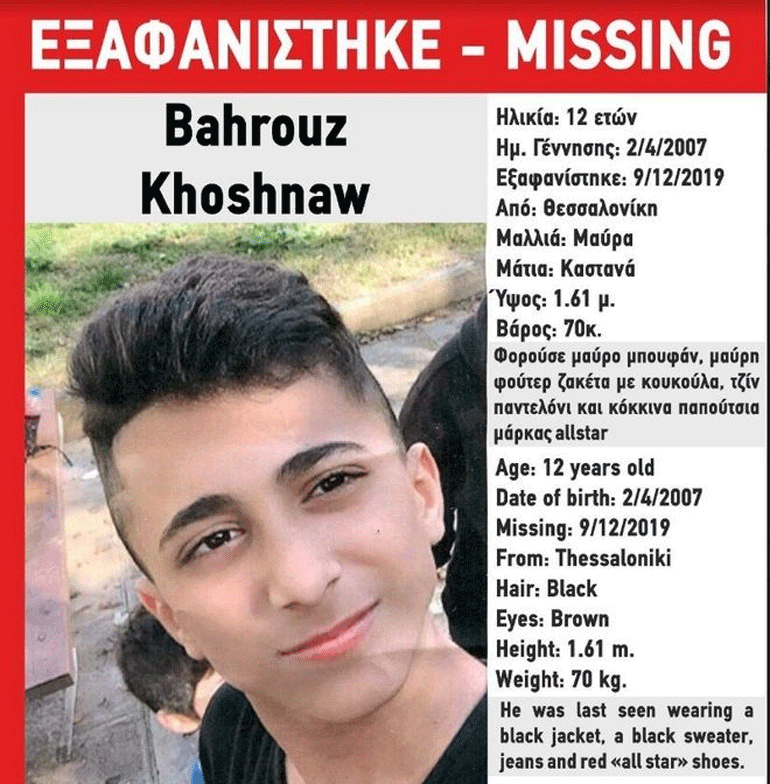Ο 12χρονος Bahrouz Khoshnaw έχει ύψος 1,61 μ., έχει 70 κιλά βάρος, έχει μαύρα μαλλιά και καστανά μάτια. Ο Bahrouz Khoshnaw φορούσε μαύρο μπουφάν, μαύρη φούτερ μπλούζα, τζιν παντελόνι και κόκκινα παπούτσια μάρκας all star.