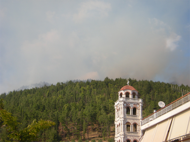Οι δρόμοι έχουν αποκλειστεί από την αστυνομία, ενώ τα αεροπλάνα άρχισαν λίγο πριν τις 19.00 το απόγευμα, ρίψεις προς το χωριό, καθώς οι εστίες προς Περιστέρι και Αφράτο είναι ακόμα ενεργές.