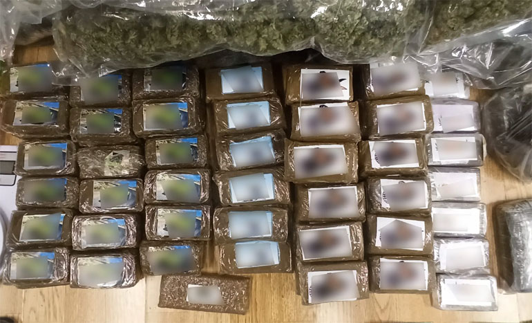 Σε έρευνες που πραγματοποιήθηκαν σε δύο σπίτια, σε όχημα, καθώς και στην κατοχή των συλληφθέντων, βρέθηκαν και κατασχέθηκαν: 4 κιλά και 51 γραμμάρια κοκαΐνης, 49 κιλά και 478 γραμμάρια ακατέργαστης κάνναβης υδροπονικής καλλιέργειας (skunk), 9 κιλά και 309 γραμμάρια κατεργασμένης κάνναβης, 635 γραμμάρια κρυσταλλικής μεθαμφεταμίνης, 6.500 δισκία Εcstasy, 1,2 γραμμάρια ακατέργαστης κάνναβης, 58.000 ευρώ, 2 οχήματα, 3 ηλεκτρονικές ζυγαριές ακριβείας, 5 κινητά τηλέφωνα και πλήθος νάιλον συσκευασιών.
