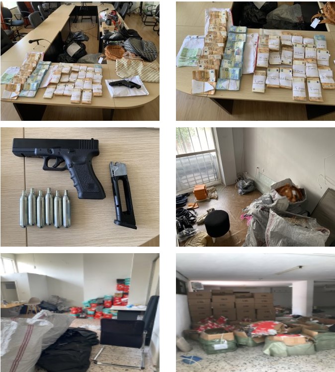 Επίσης, σε έρευνα σε οικία ανευρέθηκαν παραστατικά στα οποία, μέλος της οργάνωσης, φαινόταν ως αποδεκτής ποσότητας υποδημάτων που μεταφέρονται ακτοπλοϊκά από την Κίνα σε κοντέινερ. Στο πλαίσιο αυτό, το εν λόγω κοντέινερ δεσμεύτηκε από το Τελωνείο Πειραιά, προκειμένου να ερευνηθεί εάν το περιεχόμενό του σχετίζεται με τις εγκληματικές δραστηριότητές της οργάνωσης.