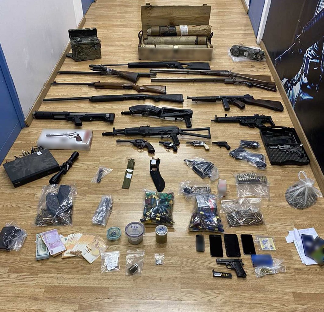 - 5 πολεμικά όπλα, 11 γεμιστήρες και 770 φυσίγγια διαφόρων τύπων και διαμετρημάτων,